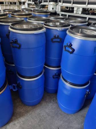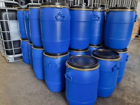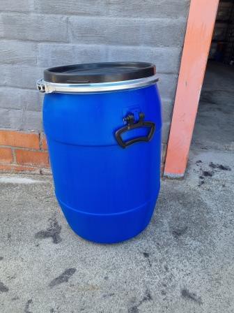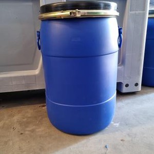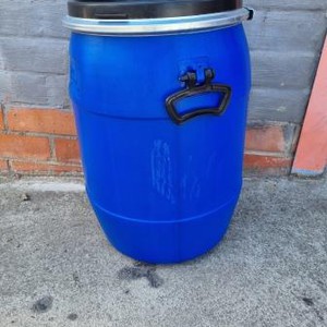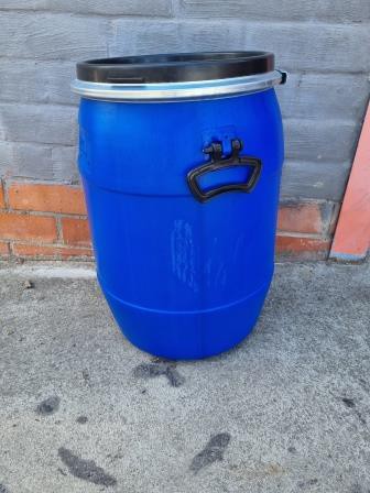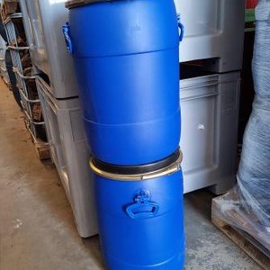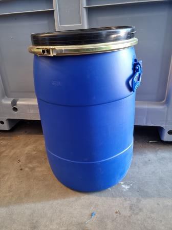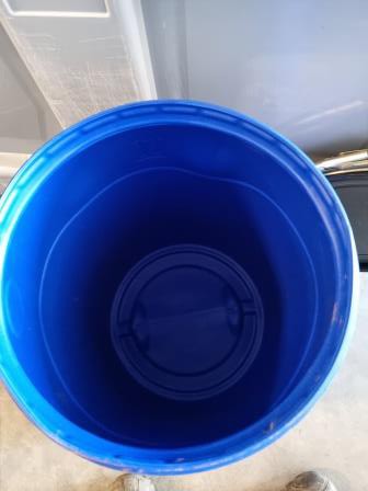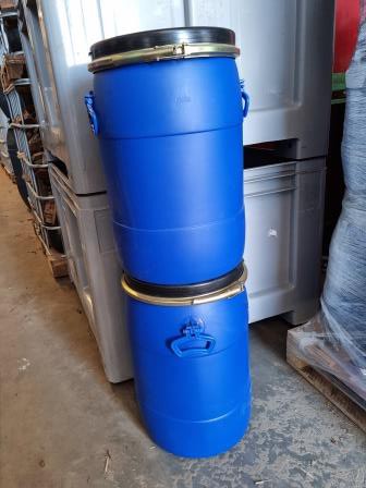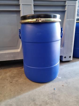 Blauwe Vaten van 50 L met deksel en klemring aan 25 euro / stuk excl. BTW AFGEHAALD