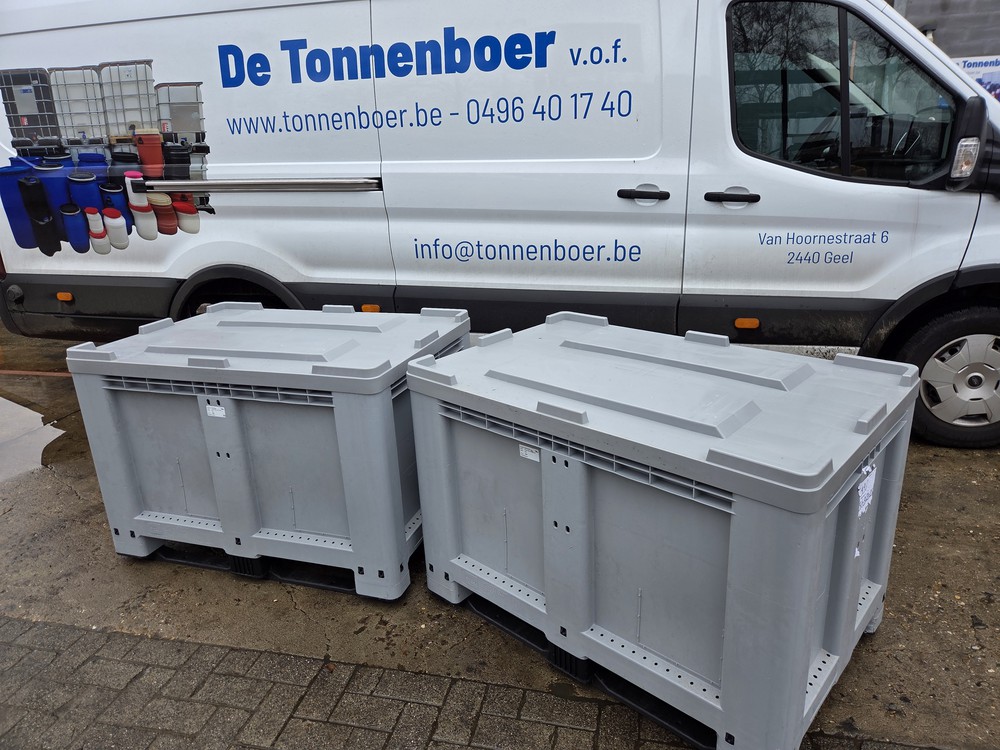 Klein grijze palletboxen 1.20 x 80 x 79 met deksel